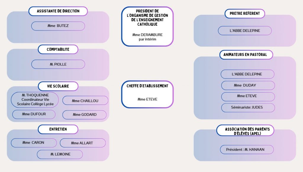 L’organigramme du personnel OGEC du collège Sainte Colette